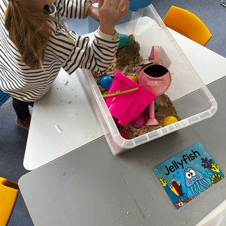This week senior infants had great fun using the stand during Aistear. We made castles, hills and more, we used lots of different items to make amazing creations with the sand.